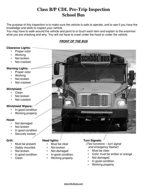 pre trip inspection school bus cdl study